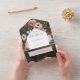 AVAILABLE WITH OR WITHOUT A QR CODE OR WITH OR WITHOUT DINNER SELECTION OPTIONS. This design features bouquet of burgundy marsala, pink blush, and white flowers on a soft charcoal black background that has been distressed with champagne gold. Add a QR code to your invitation so that gusts can quickly access your wedding Website for details, directions, menu options, and more, or add your gift registry Web URL. Personalised All-In-One invitations are a unique combination of both a beautifully printed custom invitation with an easy to tear off perforated RSVP postcard. And they are so easy to use! You simply fold, then seal the back flap with the three included clear stickers, and mail. And when your guests receive your custom invite, they just tear the perforated RSVP Card off and drop it back in the mail to you!