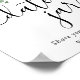 My thoughts on this product was excellent. Well printed in a gloss finishing and just the size l ordered. It arrived in good condition and am overall satisfied with the product. The printing turned out great. I was quite surprised with the finishing touch to the poster. The semi gloss was just right and a perfect size to display at the wedding.