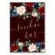 Sophisticated watercolor floral garland shower, birthday, or reception "Dessert Bar" table signage featuring burgundy marsala red and blush pink hand-painted header drop border with navy blue accent flowers embellished by botanical laurel and dark red. From the "Boho Bloom" collection, this layout incorporates rich Bohemian wildflowers with radiant blooms and eucalyptus greenery foliage. For other colours or matching products, please visit the JustFharryn Zazzle store, or contact the designer, c/o Fharryn@yahoo.com All rights reserved. #bohochic #zazzlemade