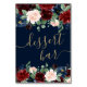 Boho Blooms | Dark Rustic Navy and Red Dessert Bar Table Number