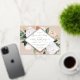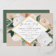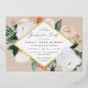Elegant floral graduation party invitation features a diamond shaped frame of watercolor flowers and foliage in boho desert inspired shades of peach, white, ivory, and sage green, and finished with gold foil trim. Personalise with your graduation party details.