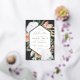 Elegant floral baby dedication invitation features an elongated hexagonal frame of watercolor flowers and foliage in boho desert inspired shades of peach, white, ivory, and sage green, and finished with gold foil trim. Personalise with your church dedication ceremony and party details in modern lettering.