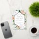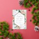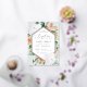 Elegant floral baptism invitation features an elongated hexagonal frame of watercolor flowers and foliage in boho desert inspired shades of peach, white, ivory, and sage green, and finished with gold foil trim. Personalise with your church baptism ceremony and party details in modern lettering.