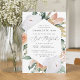 Elegant floral bat mitzvah invitation features an elongated hexagonal frame of watercolor flowers and foliage in boho desert inspired shades of peach, white, ivory, and sage green. Personalise with your bat mitzvah ceremony and party details in modern lettering.