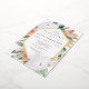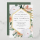 Elegant floral bridal shower brunch invitation features an elongated hexagonal frame of watercolor flowers and foliage in boho desert inspired shades of peach, white, ivory, and sage green, and finished with gold foil trim. Personalise with your bridal brunch details in modern lettering.