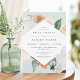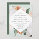 Elegant floral bridal shower brunch invitation features a diamond shaped frame of watercolor flowers and foliage in boho desert inspired shades of peach, white, ivory, and sage green. Personalise with your bridal brunch details.