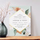 Elegant floral engagement party invitation features a diamond shaped frame of watercolor flowers and foliage in boho desert inspired shades of peach, white, ivory, and sage green, and finished with gold foil trim. Personalise with your engagement party details in modern lettering.