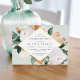 Elegant floral engagement party invitation features a diamond shaped frame of watercolor flowers and foliage in boho desert inspired shades of peach, white, ivory, and sage green, and finished with gold foil trim. Personalise with your engagement party details in modern lettering.
