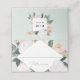 Boho chic floral place card or table card design features a geometric border of watercolor foliage and flowers in desert inspired shades of pastel peach, sage green, ivory and white. Space provided for guest name and table number. Cards reverse to reveal a matching floral frame with your initials and wedding date inside. Designed to match our Boho Blooms wedding and event collection.