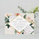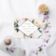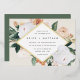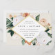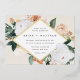 Elegant floral wedding invitation features your wedding details in modern lettering, set in a geometric diamond shaped frame of pastel watercolor flowers and botanical foliage in desert inspired earth tone shades of peach, sage green, white and ivory. Gold foil trim completes the look for a luxe touch.