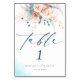 Boho Blue Beach Floral Wedding Table Number