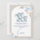 Cute bohemian floral themed elephant baby shower thank you card featuring and elephant and calf, an arch and floral blush roses arrangements. The arch is white and the background is a beige color that can be altered.