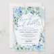 Boho Blue Floral Gold Geometric Brunch and Bubbly Invitation