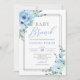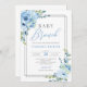 Boho blue floral silver glitter frame baby brunch invitation