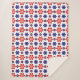 This thick cozy fleece blanket features a beautiful colorful floral pattern of blue, purple and red stylized daisies against a white background; perfect for adding a touch of retro cuteness to your home.