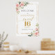 Immerse yourself in the charm of this sophisticatedly curated design, featuring delicate pinks of vintage roses fused with the verdant freshness of eucalyptus foliage. The gold frame serves as the perfect highlight, adding a touch of opulence to the mix. This design is specifically tailored for 16th Birthday welcome poster porch sign, infusing traditional elegance with a modern bohemian vibe. It's an alluring blend of classic floral warmth with a chic metallic edge. "Boho Blush" is a harmonious symphony of blush pink, eucalyptus green, and gold, evoking an atmosphere of timeless romance, sure to leave spellbinding impressions.