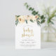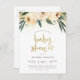 This bohemian invitation features "baby shower" in a brushed faux gold script, framed by confetti, three blush pink flowers and watercolor foliage. Your details appear underneath in an elegant typography. The back of this postcard invitation has been left blank so that you can write a custom message and add an address. This design is great for outdoor events or floral themed showers.