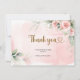 Boho blush pink floral green eucalyptus gold oval baby shower thank you card