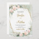 Boho Blush Pink Floral Greenery Gold Frame Wedding Invitation