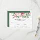 Elegant floral wedding RSVP cards featuring a top border of peach, blush & pink watercolor flowers with lush green foliage. Personalise the wedding response cards by adding your RSVP by date and meal choices. The reverse side displays a solid green background. Perfect for spring & summer garden weddings!