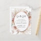 Boho Blush Pink Floral Dried Palm Leaves Rose Gold Metallic Frame Wedding Save the Date... Our luxe boho floral Save the Date postcard features an arrangement of beautiful blush pink roses, eucalyptus, and dried palm leaves around a faux rose gold metallic oval frame creating an elegant border for the invitation text within. The back of the card contains your return address, wedding website information, and a QR code graphic template you can replace with your own (or delete). All example text on both sides of the card (except the Save the Date text graphic) can be easily revised with your own details on the personalisation template.