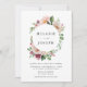 Invite guests to your wedding in style with our elegant blush & pink watercolor floral wedding invitations. The invite displays your names surrounded by a circular frame of blush, pink, and purple watercolor flowers complimented by green foliage with your wedding details below. Personalise the invites by adding your name, wedding date, time, location, and reception information. The invite reverses to a solid green background.
