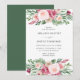 Invite guests to your wedding in style with our elegant peach, blush & pink watercolor floral frame wedding invitations. The invite displays your wedding details with sprays of peach, blush, and pink watercolor flowers at the top and bottom. Personalise the invites by adding your name, wedding date, time, location, and reception information. The invite reverses to a solid green background or colour of your choice. Perfect for spring and summer weddings!