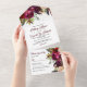 Boho Bold Burgundy & Gold Floral Wedding All In One Invitation