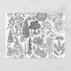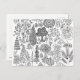 A cute boho hand-drawn black and white pen and ink decorative tree pattern postcard. By Julie Nicholls©.