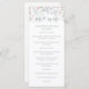 This delicate botanical wedding menu design features shades of coral, peach, grey and blue grey, and has plenty of leaves, flowers, and accents.