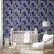 Boho Botanical Flower Pattern Blue Wallpaper
