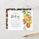 Invite family and friends to your wedding with this botanical wedding invitation. It features watercolor illustrations of oranges, lemons, orange blossoms and greenery with a matching citrus pattern. Personalise by adding the name, date, time, venue, address and other event details. This citrus wedding invitation is perfect for garden and summer weddings. Matching items are available.
