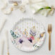 Beautiful Boho watercolor illustration features flowers and feathers on white with gold arrows background.