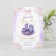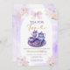 Boho Bow Purple Tea for two girl Birthday flowers Invitation