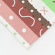 Cute whimsical boho blanket with pink, mauve, brown, burgundy and sage green polka dots and stripes pattern. Earthy warm colours.
