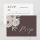 Boho Brown & Off White Watercolor Floral RSVP Card