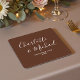 Add a personalized touch to your wedding decor with our Boho Brown Script Minimalist Wedding Square Paper Coasters! These coasters can be customized with the names of the bride and groom, along with the date of the wedding.