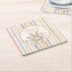 Celebrate a new arrival with these whimsical storybook-inspired paper drink coaster. This design features a hand-painted watercolor bunny centered among soft meadow wildflowers and a muted vertical stripe border. Perfect for a gender-neutral woodland baby shower or a sweet spring birthday celebration.