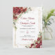Delight guests for your wedding with this trendy design for invitation with this adorable modern watercolor deep red marsala roses and blush flowers mixed fresh eucalyptus greenery foliage mixed gold sparkles and elegant woven into gold frame.