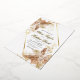 Modern stylish dark wedding card white with gold dust on with a gold ink pour effect and modern calligraphy. Classy and elegant, luxury and modern invitation.
