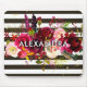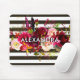 Boho Burgundy Floral | Black and White Stripes Mouse Pad