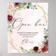 Boho burgundy floral gold wedding open bar sign, 8x10 sign, Contact me for matching items or for customisation, Blush Roses ©