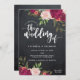 A beautiful boho burgundy and pink blush floral arrangement design with a chalkboard effect background and reverse side. Easy to edit or delete the available text fields to personalize the information with your own details for a professional finish. Lots of matching items in this pretty collection. Please visit my shop.