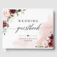 This is modern trendy wedding guest book with blooming marsala burgundy and blush pink florals accented gold glitter sparkles