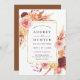 This wedding invitation features rustic watercolor flowers in terracotta, burgundy, burnt orange, yellow, blush pink with beige and brown pampas grass, and a gold rectangle frame. For more advanced customisation of this design, please click the "customise further" link. Matching items are also available.