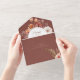 ALSO AVAILABLE WITH A QR CODE TO SCAN IN THE RSVP AREA OR WITHOUT DINNER SELECTION OPTIONS. This design features a burnt orange rust, peach, brown and cream watercolor fall boho floral bouquet frame on a distressed rust background. Personalised All-In-One invitations are a unique combination of both a beautifully printed custom invitation with an easy to tear off perforated RSVP postcard. And they are so easy to use! You simply fold, then seal the back flap with the three included clear stickers, and mail. And when your guests receive your custom invite, they just tear the perforated RSVP Card off and drop it back in the mail to you!