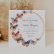 Butterfly-themed boho baby shower invitation featuring a beautiful butterfly wreath. Personalise with your information or click "Click to customise further" to edit font styles, size and colours.
