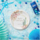 Boho Cactus Pink Flowers Watercolor Paper Plates