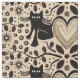 The cats and hearts seem stamped on the fabric: the linen's texture is visible, and the paint has a gentle, washed effect.