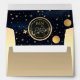 Complete your wedding suite with this luxurious gold envelope featuring a celestial night sky liner and personalised monogram. The shimmering navy and gold starry design inside adds a dreamy, romantic touch, perfectly matching boho, celestial, and starry night weddings. Customise the return address for a polished and unforgettable presentation.